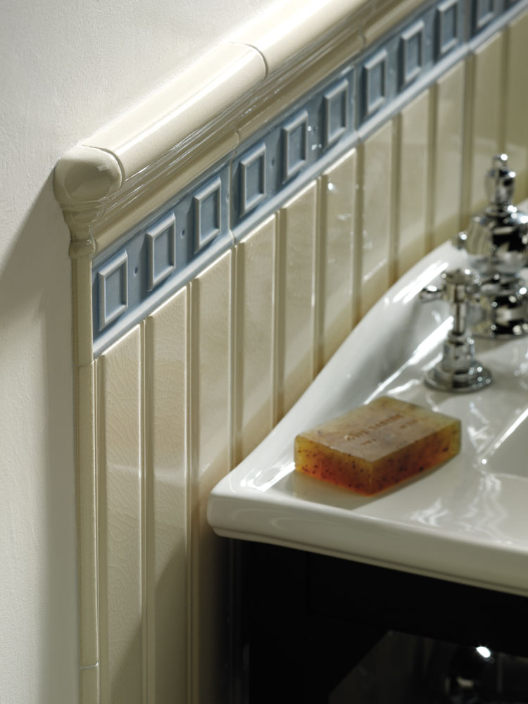 Boiserie Origins, inspired by traditional wood paneling, is the first and historic series created by Grazia in this style. Double-fired white body wall tiles with both a matt and a craquele’ finish. The characteristic feature of this collection is its versatility, which, depending on the chosen furniture, can highlight country, vintage, shabbychic, traditional or cottage styles. Revisited and enriched with numerous trendy colours, it is now suitable also for contemporary environments.